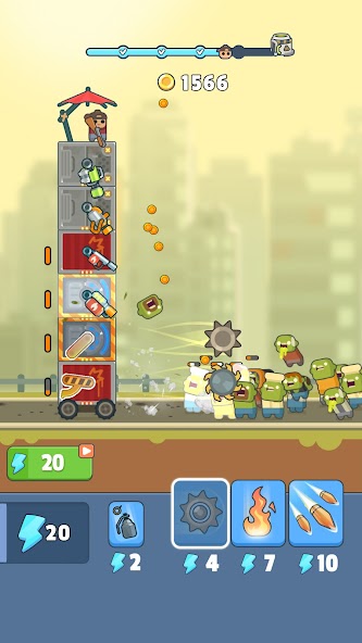 Ваш путь начинается с простых блоков, из которых вы создаёте башню. На каждом уровне вы добавляете новое оружие, от огнемётов до ракетниц, чтобы отбиваться от врагов. Улучшайте свои пушки, чтобы справляться с более сильными противниками, и не забывайте про стратегию: правильное размещение оружия может стать ключом к победе.
