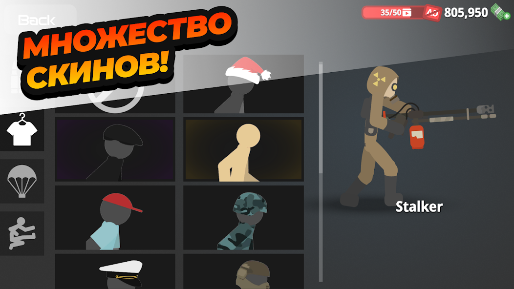 Собранные монеты позволяют разблокировать новое оружие и улучшать навыки. Вы можете настроить внешний вид стикмена, добавив ему уникальности. Оружие и снаряжение играют ключевую роль в битвах, помогая справляться с толпами врагов и сложными ситуациями.