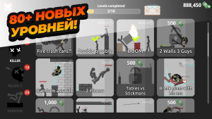 Игра предлагает два основных режима: Паркур и Killer. В первом вы сосредотачиваетесь на выполнении трюков, прыжков и сальто, чтобы преодолеть сложные трассы. Во втором — участвуете в битвах, используя оружие и навыки. Каждый режим требует своих подходов и решений, что добавляет разнообразия.