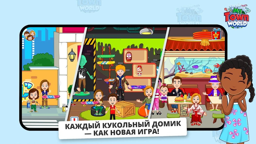 В My Town Мир каждая локация несёт в себе новые возможности для исследования и игр. Исследуйте более 200 разнообразных мест — от уютных домиков и магазинов до больших торговых центров и больниц. Вы сможете не только посещать эти локации, но и участвовать в их оживлении, наполняя пространство жизнью.