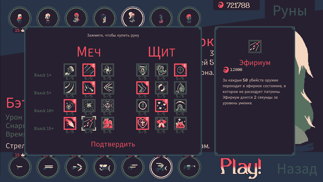 Даже если вы не выжили, собранные ресурсы можно потратить на открытие новых персонажей, оружия и рун. Эти улучшения дают вам преимущество в следующих сессиях, позволяя экспериментировать с разными стилями игры. Например, вы можете выбрать персонажа, который вызывает молнии, или того, кто замораживает врагов, создавая уникальные комбинации.