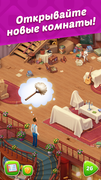 Homescapes — это увлекательная головоломка в жанре «три в ряд», где вы помогаете дворецкому Остину восстановить семейный особняк. Каждая глава игры — это новая комната, которую вы наполняете уютом, решая головоломки и зарабатывая звезды. Ваша цель — вернуть дому былую красоту и раскрыть семейные тайны.