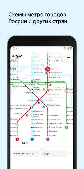 Приложение автоматически определяет ваше местоположение и предлагает схему метро соответствующего города. Вы можете вручную выбрать станции отправления и прибытия или просто коснуться их на карте. Уведомления о ремонтах и закрытиях помогут избежать неприятных сюрпризов.
