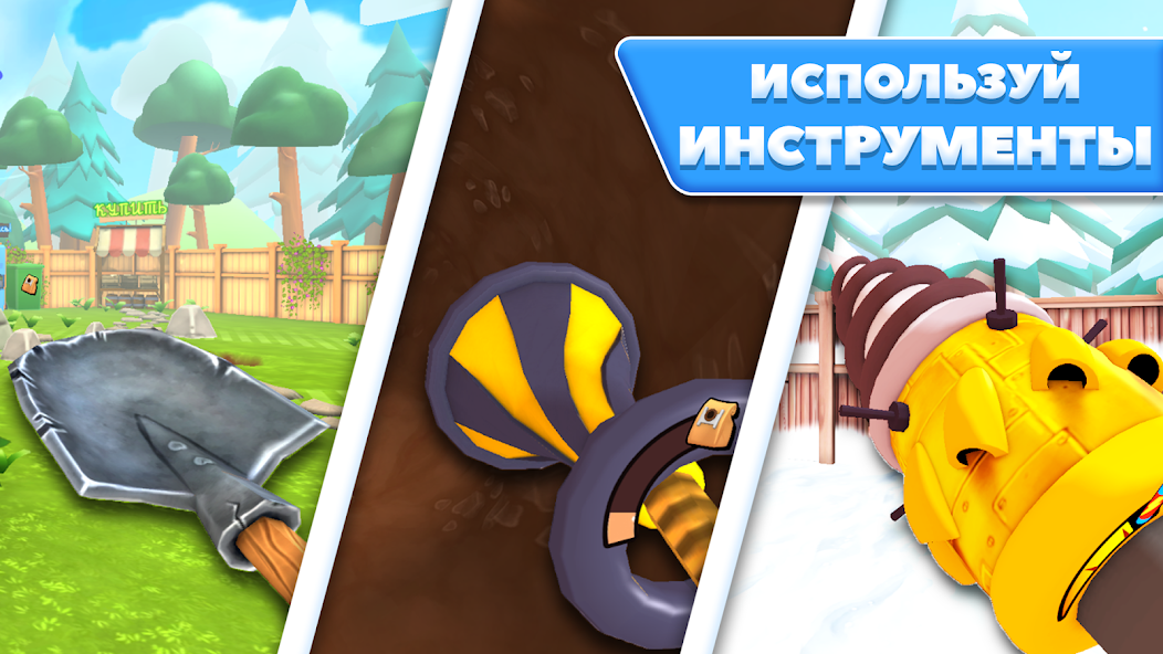 Под землей вас ждут драгоценности, золото, редкие артефакты и даже неожиданные находки. Продавайте найденные предметы, чтобы заработать средства на улучшение инструментов и открытие новых возможностей. Чем глубже вы копаете, тем ценнее становятся находки.