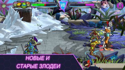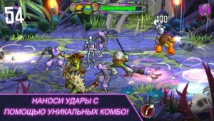 Вам предстоит управлять сразу четырьмя черепашками, комбинируя их уникальные способности. Проведите пальцем по экрану, чтобы атаковать врагов, или используйте командные приёмы для максимального урона. В игре вас ждут схватки с Кланом Фут, Бибопом, Рокстеди и другими знакомыми злодеями.