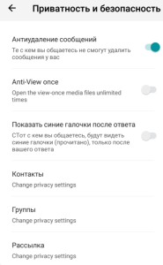 - Управление конфиденциальностью: скрытие статусов и изображений.