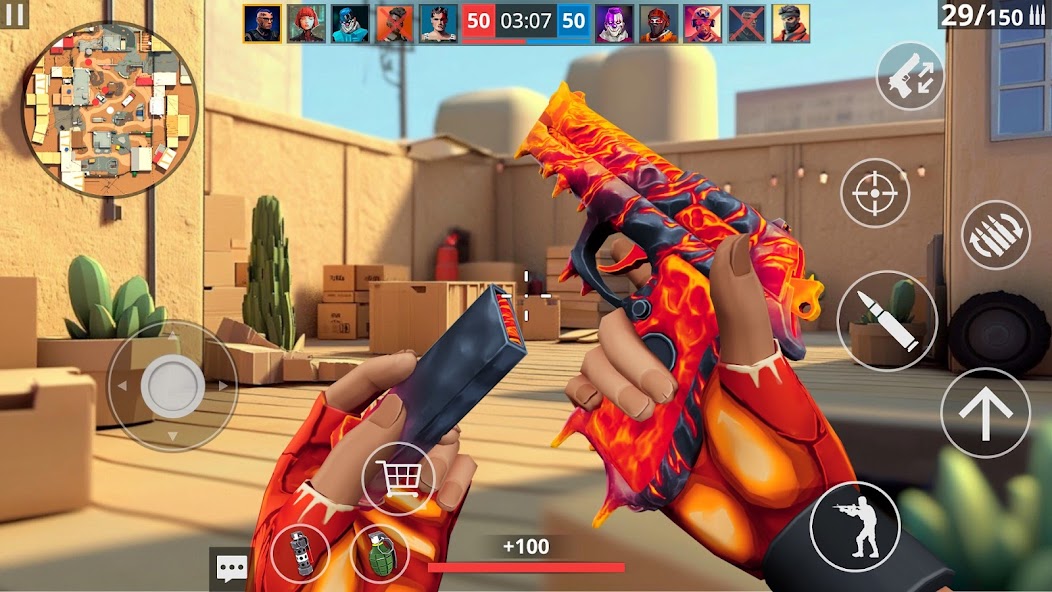 - Командный бой: две команды по пять человек соревнуются за 50 убийств.