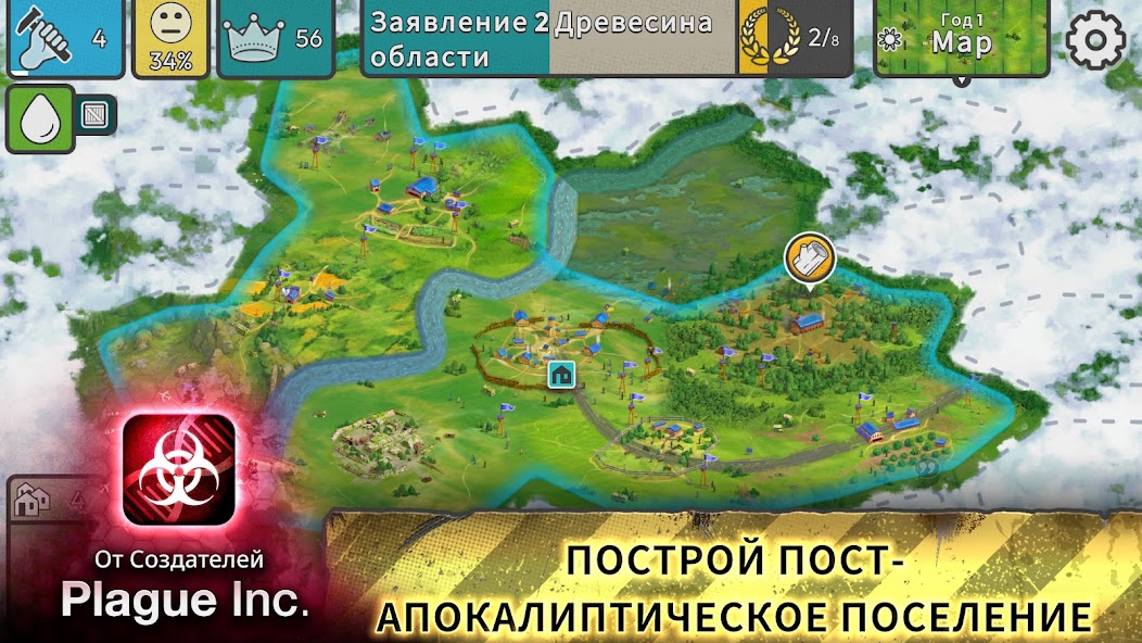 - Прокачка лидеров — выбирайте персонажей с уникальными способностями для управления поселением.