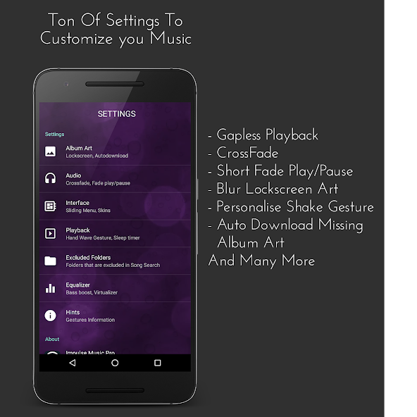 Impulse Music Player Pro поддерживает популярные форматы, такие как MP3, WAV и FLAC. Благодаря функции жестов, вы можете наслаждаться музыкой, не отвлекаясь на экран. Это приложение создано для тех, кто ценит свободу и комфорт в каждом движении.