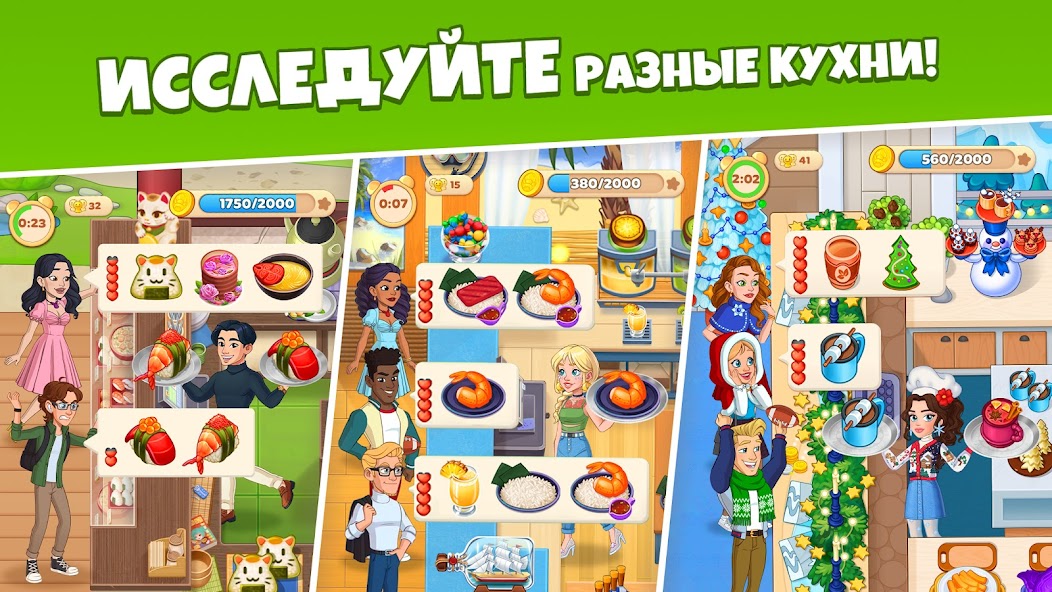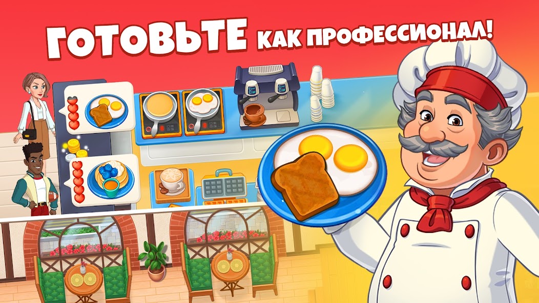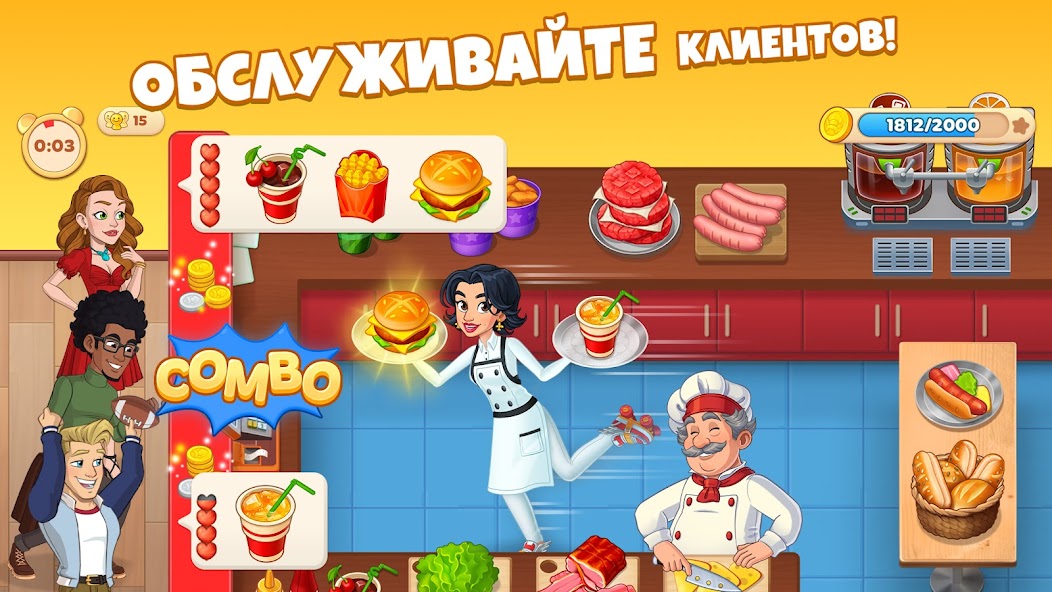 Ваша задача — готовить блюда, обслуживать посетителей и выполнять задания на каждом уровне. Клиенты делают заказы, а вы должны успеть приготовить и подать их до истечения времени. Уровни становятся сложнее, добавляя новые рецепты и ограничения. Например, нельзя терять клиентов или выбрасывать блюда. За успешное выполнение вы получаете монеты, звезды и чаевые.