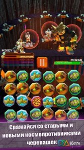 Улучшайте способности черепашек, чтобы подготовить их к сложным миссиям. Зарабатывайте игровые ресурсы в боях и распределяйте их между героями. Черепашки-ниндзя: Космобитва — это не только сражения, но и возможность стать стратегом, который приведёт свою команду к победе.