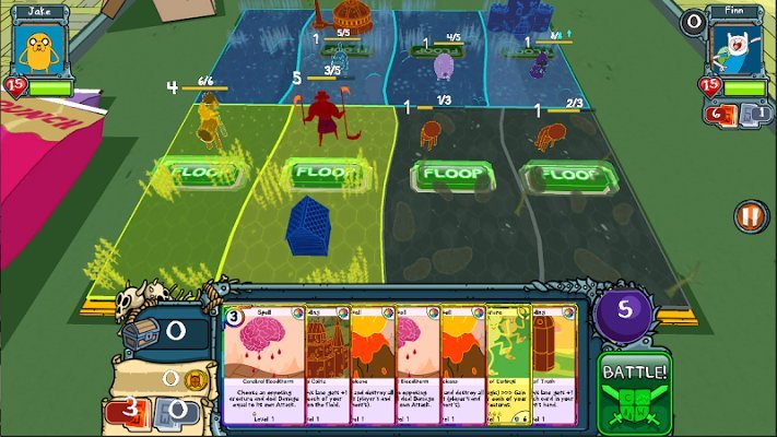 Сражайтесь за Финна, Джейка, Принцессу Бубыльгум и других героев Земель Ооо. Используйте Кукурузных Рыцарей, Сверхпса и даже Бессмертного Маисового Ходока, чтобы одержать победу. Ваша задача — разгромить соперника, строя башни и применяя заклинания.