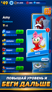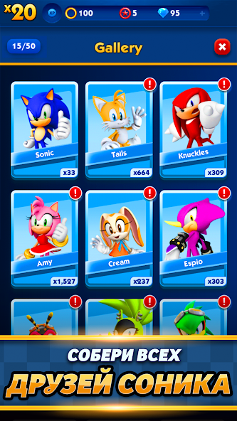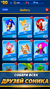 В игре доступны не только Соник, но и его друзья: Тейлз, Наклз, Эми и другие. Каждый герой обладает своими особенностями, которые можно улучшать. Выполняйте ежедневные задания и миссии, чтобы получать ценные награды, включая редкие кольца и новых персонажей.