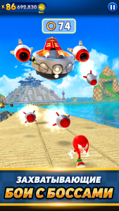 - Сражайтесь с боссами, включая доктора Эггмана и Зазза, используя скорость и ловкость.
