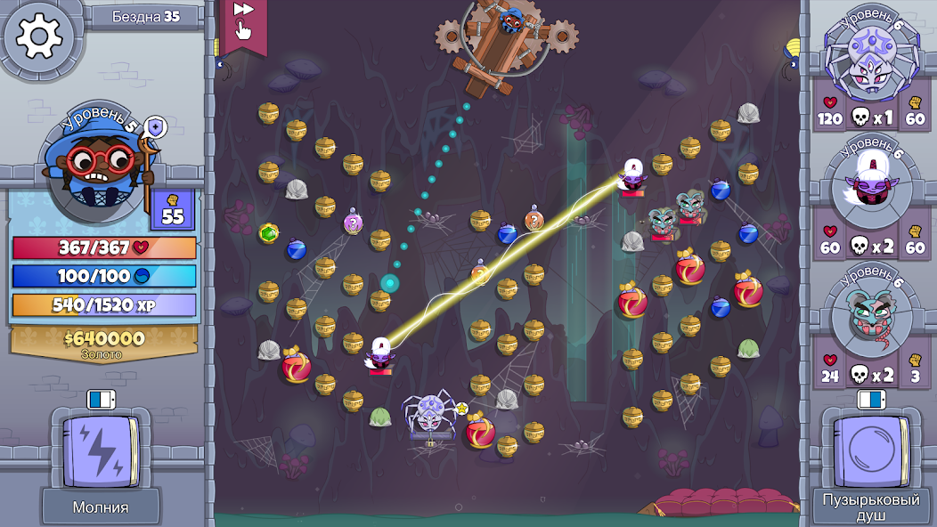Собирайте золото, чтобы улучшать свои шансы на успех в следующем забеге.