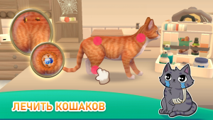 С каждым новым уровнем вы открываете больше возможностей: новые стили мебели, редкие виды кошек и дополнительные задания. Ветеринар всегда готов помочь, а вы — стать настоящим мастером кошачьего приюта.
