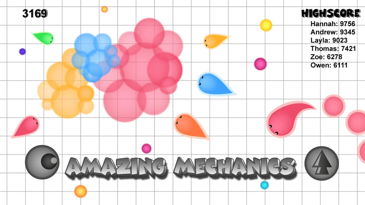 - Исследовать карту, находя редкие бонусы и усиливая своего слизня.