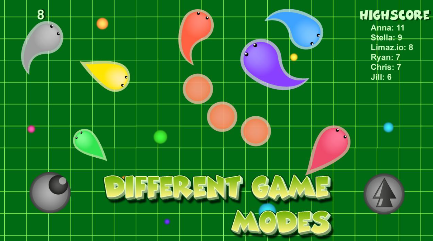 В Limaz.io вы начинаете с небольшого слизня, который растёт, поглощая светящиеся объекты. Однако будьте осторожны: другие участники могут использовать ловушки, чтобы остановить вас. Вам нужно: