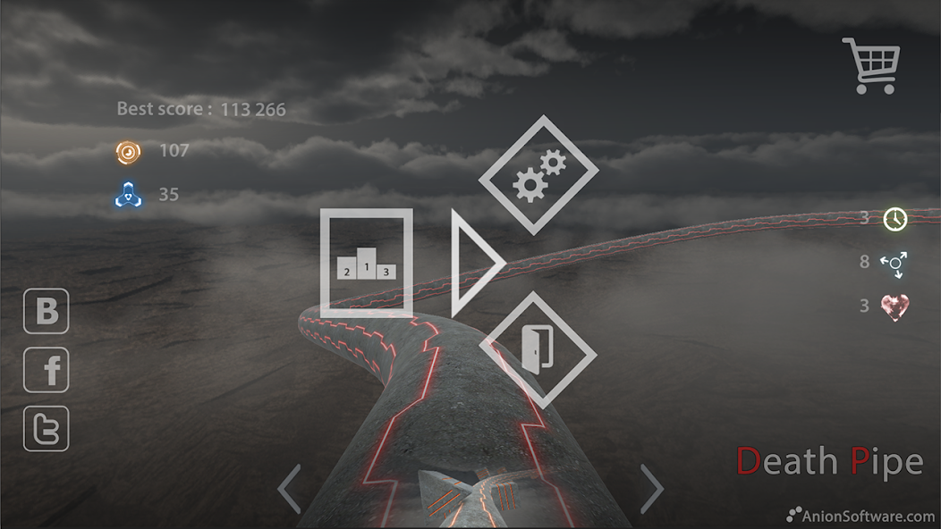 Death Pipe — это аркадный таймкиллер, где вы мчитесь по бесконечной трубе, наполненной опасностями. Ваша задача — избегать препятствий, которые появляются на пути, и продержаться как можно дольше. Управление осуществляется с помощью экранных кнопок или акселерометра, что добавляет динамики и требует быстрой реакции.