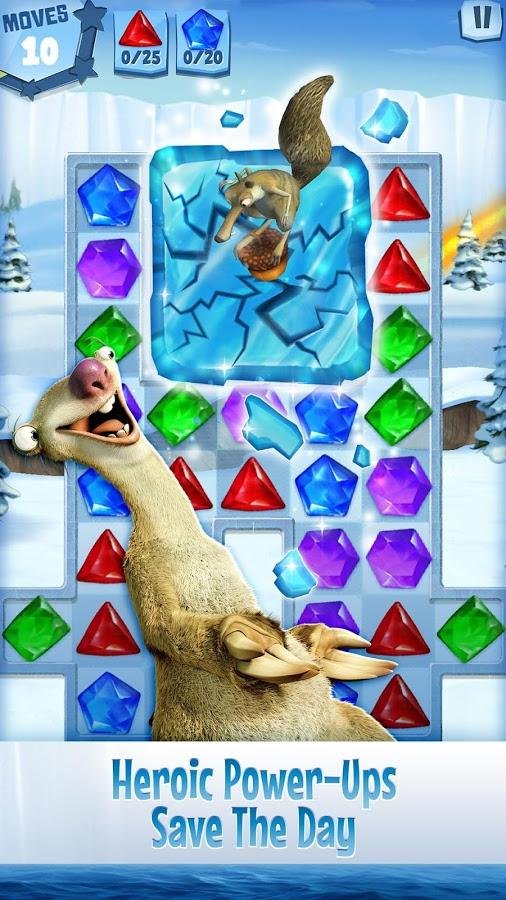 Ice Age: Arctic Blast — это увлекательная головоломка в жанре "три в ряд", где вы отправляетесь в путешествие по заснеженным просторам вместе с героями знаменитого мультфильма. Ваша цель — составлять ряды из драгоценных камней, очищая игровое поле и зарабатывая очки. Сид, Мэнни, Диего и, конечно, белка Скрат будут сопровождать вас на каждом шагу.