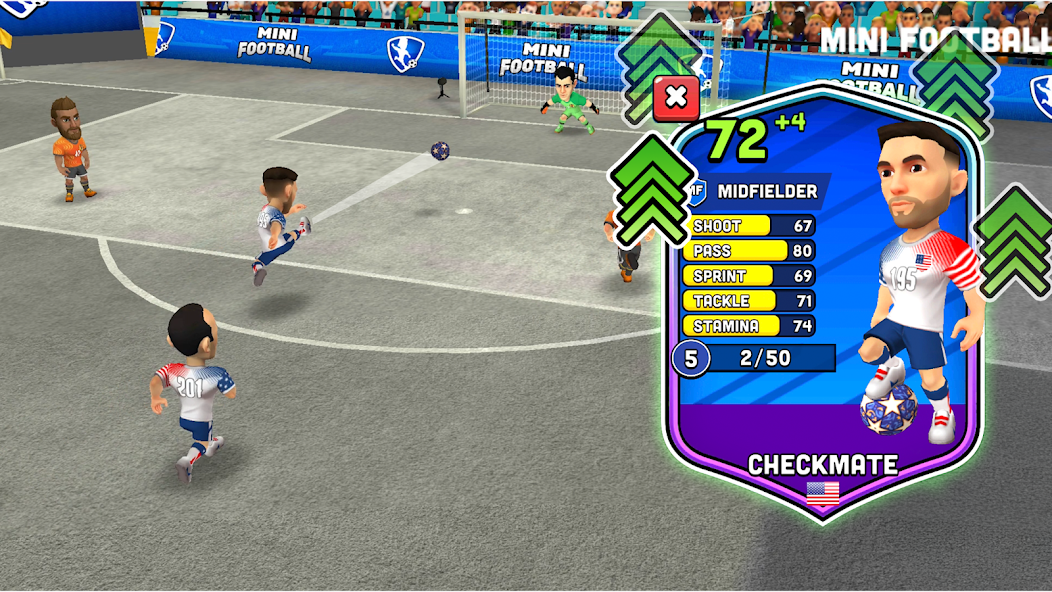 Mini Football — это аркадный футбольный симулятор, где вы можете создать свою команду мечты и сразиться с соперниками со всего мира. Простое управление и динамичные матчи делают игру доступной для всех, кто хочет почувствовать себя на поле. Ваша цель — побеждать в турнирах, подниматься в рейтингах и стать легендой футбола.