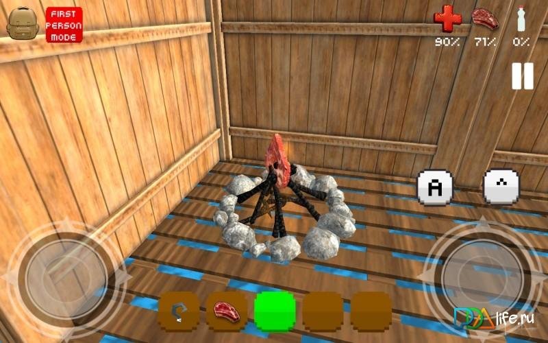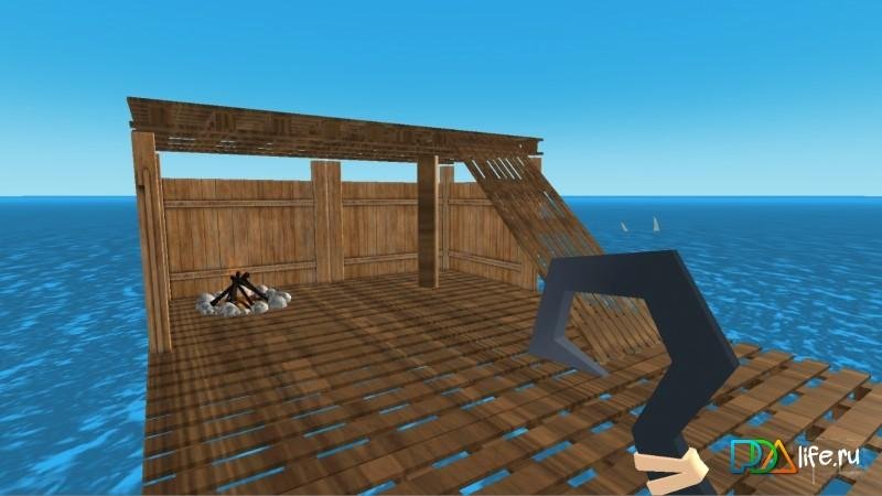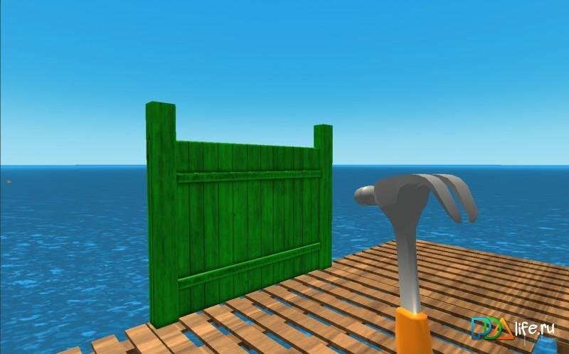 - Строительство укрытия — расширение плота, возведение стен и крыши для защиты от стихии