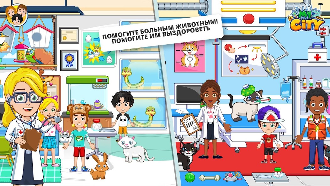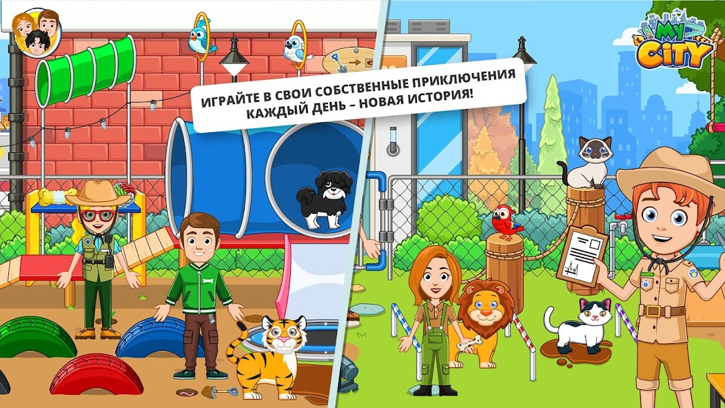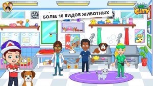 My City: Приют для животных — это не просто игра, а интерактивный кукольный домик, где вы создаете свои истории. Вы можете взаимодействовать с предметами, перемещать их и даже переносить персонажей в другие игры серии My City. Это открывает безграничные возможности для творчества и фантазии.