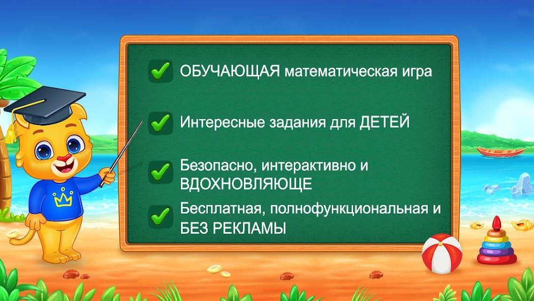 Математика для детей — это обучающее приложение, которое помогает малышам освоить основы арифметики через увлекательные игры. Сложение, вычитание, счёт и сравнение чисел превращаются в весёлое приключение, где обучение становится частью игры.
