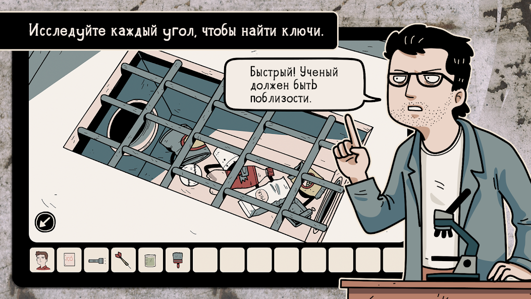 - Исследуйте комнаты лаборатории, находя скрытые предметы.