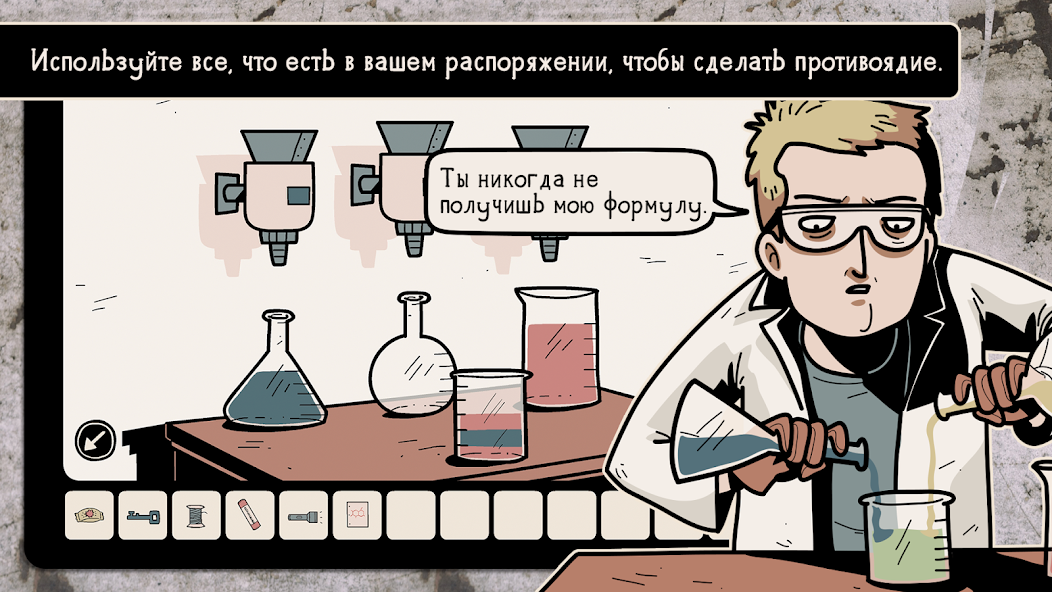 Вам предстоит управлять двумя персонажами, которые находятся в разных частях лаборатории. Чтобы выбраться, нужно решать головоломки, комбинировать предметы и использовать их в нужных местах. Например, вы можете соединять найденные объекты, чтобы создать инструмент для открытия двери. Подсказки помогут, если вы застрянете, но их использование — ваш выбор.
