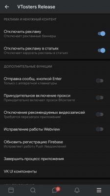 VTosters позволяет настроить приложение под вас. Здесь вы найдете такие опции, как отключение рекламы, возможность скачивать музыку и видео, а также функция "невидимки" для приватного просмотра профилей. Уникальная особенность — интеграция с прокси-серверами, что помогает обойти ограничения. С помощью гибких настроек можно легко переключаться между темным и светлым режимами интерфейса. А благодаря детализированным настройкам приватности, вы можете управлять видимостью своей активности.
