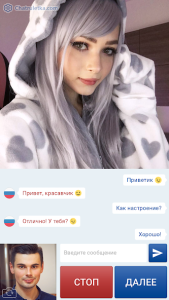 - Возможность сменить собеседника одним нажатием, если разговор не задался.