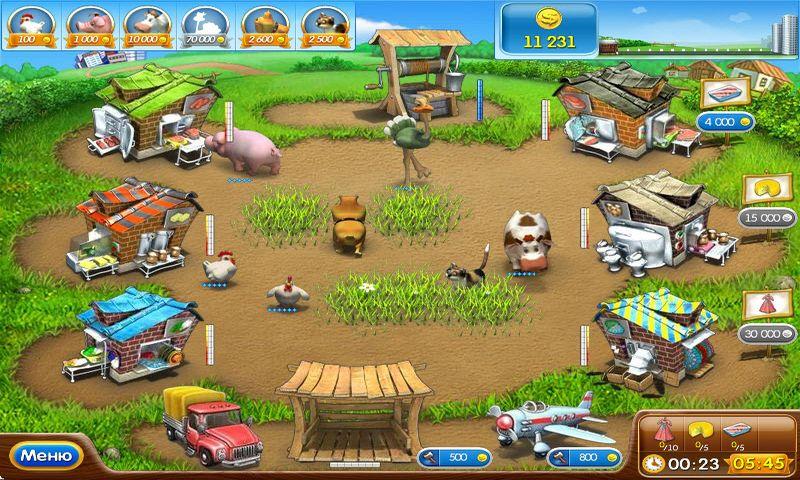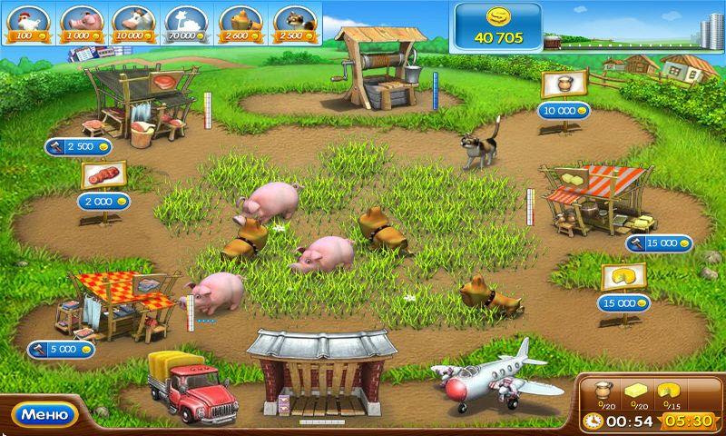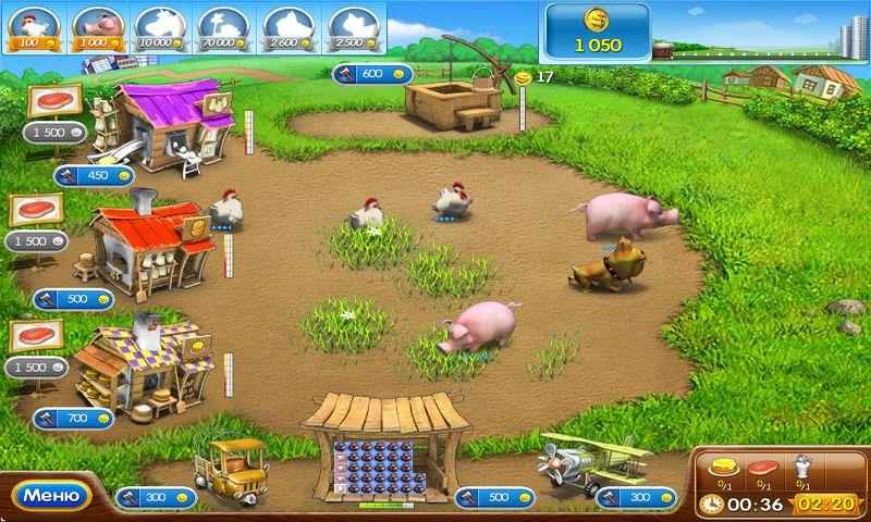 Начав игру, вы окажетесь в центре фермы, где каждое действие требует быстрого принятия решения. Необходимо успевать сажать и поливать траву, собирать молоко, яйца и шерсть, оберегать животных от нахальных медведей. Главная цель — успешно завершать уровни, выполняя задачи, например, собрать определённое количество продукции или заработать нужную сумму денег. Простое управление позволяет быстро освоиться, но для успеха потребуется грамотно планировать действия.