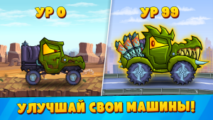 В игре доступен широкий выбор автомобилей, от Харвестера до Танкоминатора. Вы можете улучшать свои машины, добавляя новые способности: увеличивать скорость, усиливать броню или устанавливать мощное оружие. Каждое улучшение делает вас сильнее и приближает к званию короля трассы.