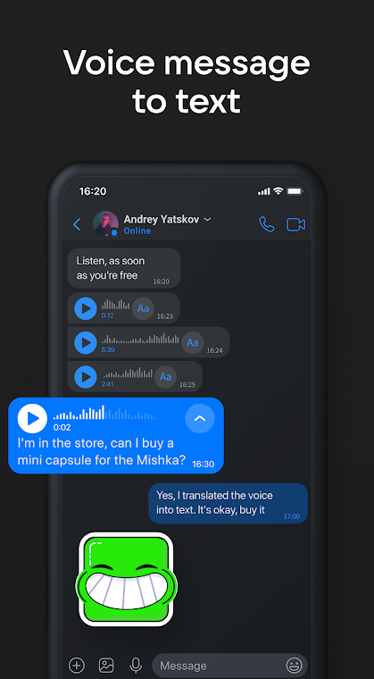 В основе функционала лежат текстовые переписки с поддержкой эмодзи и стикеров, а также возможность обмениваться фотографиями, видео и документами любых форматов. Вы можете совершать бесплатные голосовые и видеозвонки, создавать групповые чаты для коллективного общения. Приложение поддерживает отправку голосовых сообщений и позволяет делиться геопозицией с контактами.