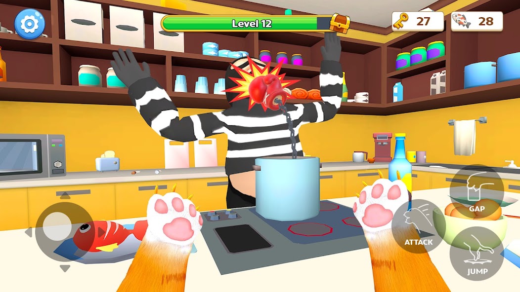 Основная задача в Cat Chaos: Prankster — устраивать беспорядок и избегать хозяйки дома, которая пытается вас поймать. Вы можете взаимодействовать с множеством предметов: царапать диваны, разбивать вазы, сбрасывать вещи с полок и многое другое. За каждое успешное действие вы зарабатываете очки, которые необходимы для повышения уровня. Управление интуитивно понятно и позволяет свободно перемещаться по яркому и интерактивному трехмерному миру, исследуя каждый уголок дома в поисках новых шалостей.