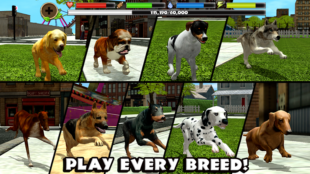 Вы можете собрать свою стаю, привлекая других собак. В игре доступно 9 пород, включая лабрадоров, доберманов и хаски. Каждая собака обладает уникальными характеристиками, которые влияют на её роль в стае. Управляйте своей группой, чтобы доминировать в городе.