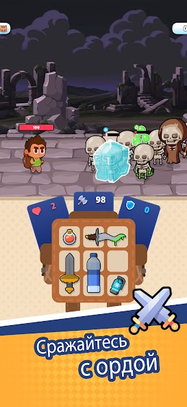 Ваш мешок — это не просто хранилище, а ключ к победе. В нём вы найдёте оружие ближнего и дальнего боя, а также уникальные предметы с особыми эффектами. Например, льдинка замораживает врагов, а шприц отнимает здоровье у противника. Все предметы можно улучшать, объединяя их, что открывает новые тактические возможности.