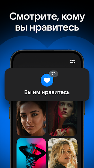 - Лайки и мэтчи: отмечайте понравившиеся анкеты, а при взаимной симпатии начинайте общение в чате.
