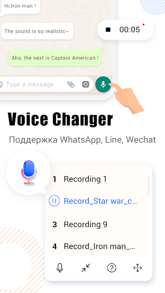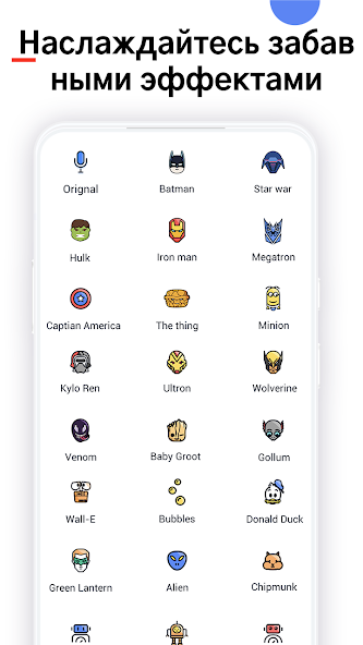 - Сменщик голоса: выбирайте из множества персонажей, от супергероев до инопланетян.