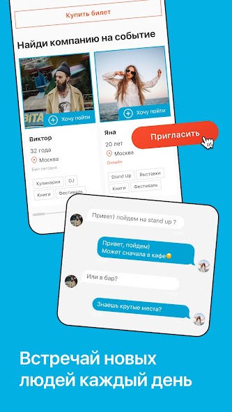Приложение «Кавёр: Афиша Знакомства Чат» объединяет в себе афишу необычных мероприятий и платформу для общения. Здесь вы найдете концерты, выставки, вечеринки и даже уникальные арт-вечера. «Кавёр» помогает не только спланировать досуг, но и найти компанию для совместного посещения событий. Это ваш гид по культурной жизни Москвы, Санкт-Петербурга и других городов.