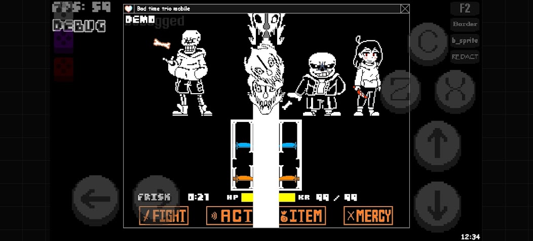 Bad Time Trio — это аркадная игра, где вы берете на себя роль падшего человека, оказавшегося в эпицентре временного сбоя. Вам предстоит сразиться с тремя мощными противниками: Сансом, Папирусом и Чарой, каждый из которых обладает уникальными способностями и приемами. Их цель — остановить ваш путь геноцида, а ваша задача — выжить в этом эпическом противостоянии.