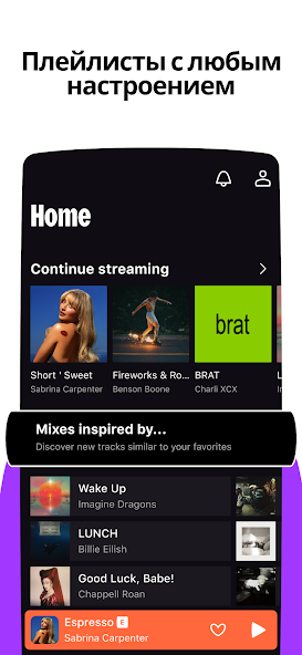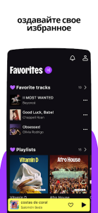 - Создавайте собственные плейлисты и оформляйте их обложки.