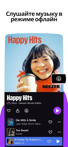 Deezer: Музыка и подкасты — это приложение для Android, которое открывает перед вами безграничный мир музыки и аудиоконтента. Здесь вы найдете миллионы треков, подкастов и плейлистов, которые подстраиваются под ваши вкусы. Главная особенность — функция Flow, которая создает персонализированный поток музыки, идеально подходящий вашему настроению.