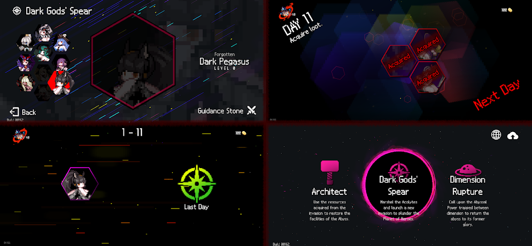 Dungeon Squad предлагает разнообразие героев, каждый из которых обладает уникальными навыками. Вы можете выбирать персонажей, усиливать их способности и адаптировать стратегию под стиль игры. Экипировка выпадает через гача-систему, что добавляет элемент неожиданности.