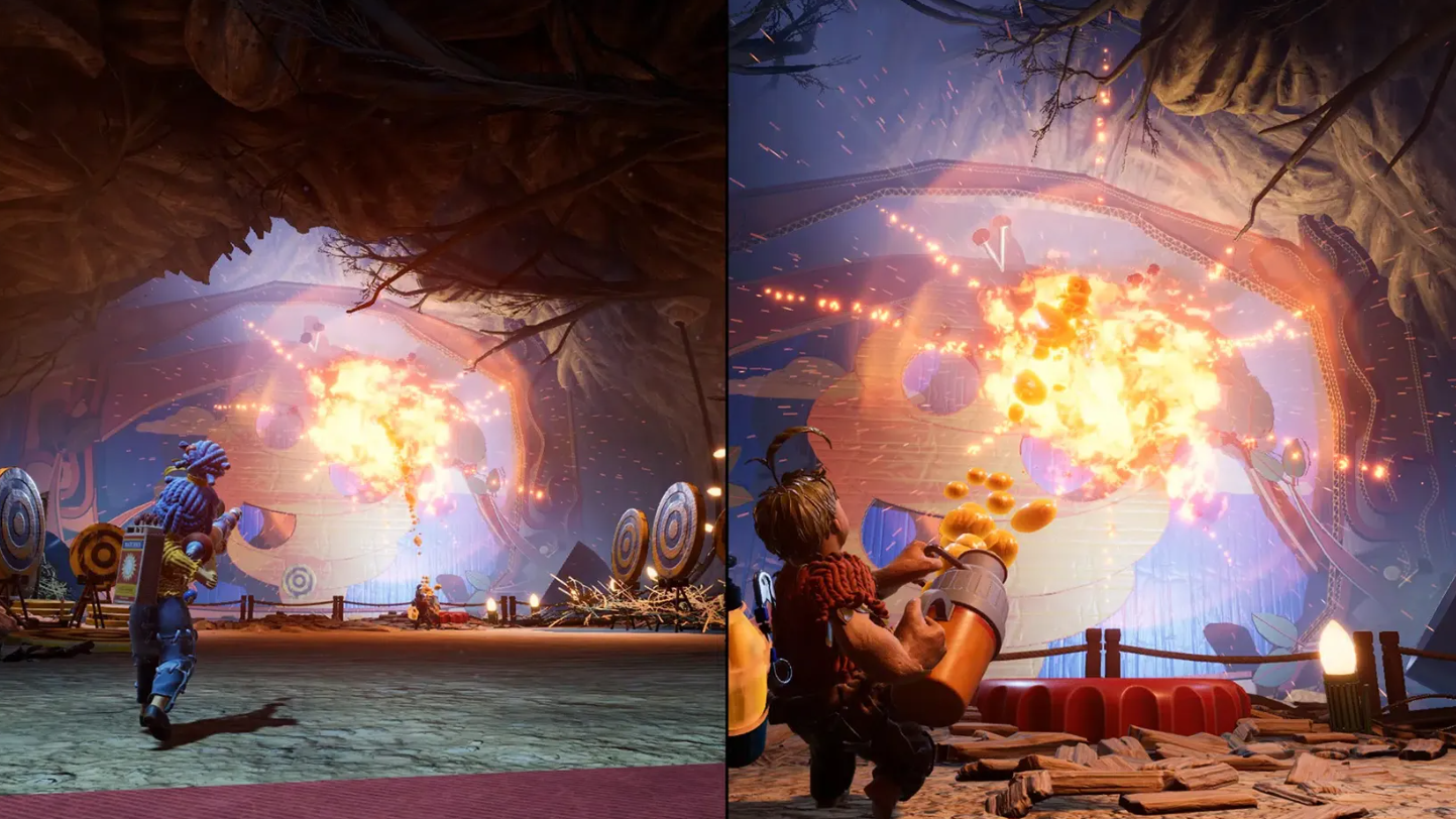 В It Takes Two вы и ваш напарник получаете уникальные способности, которые нужно использовать вместе. Например, один управляет молотом, а другой метает гвозди, чтобы активировать механизмы. Вас ждут головоломки, платформинг и даже сражения с необычными боссами, такими как злой пылесос или гигантский жук.