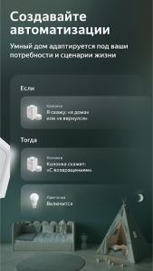 Приложение помогает поддерживать уют и безопасность. Датчики температуры и влажности следят за микроклиматом, а расписания избавляют вас от необходимости вручную включать устройства. «Дом с Алисой» — это ваш надежный помощник в повседневной жизни.