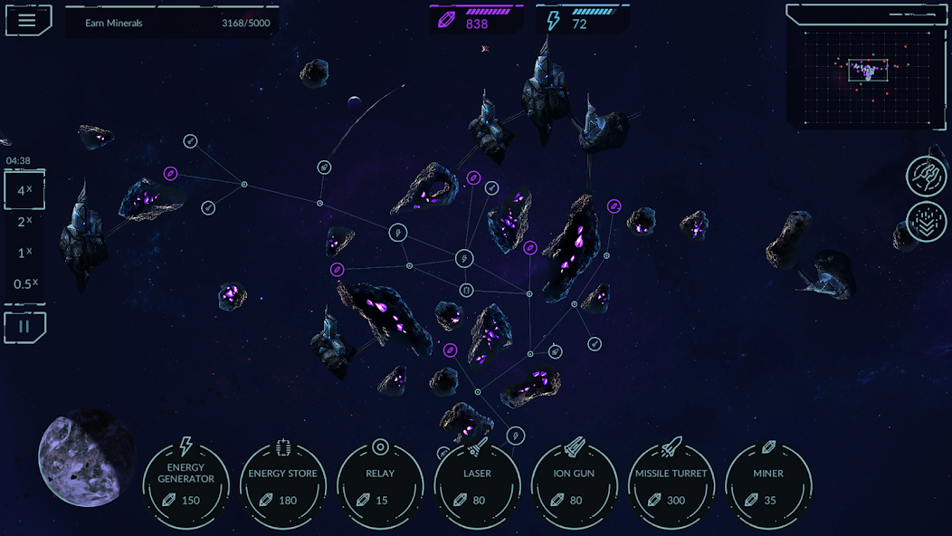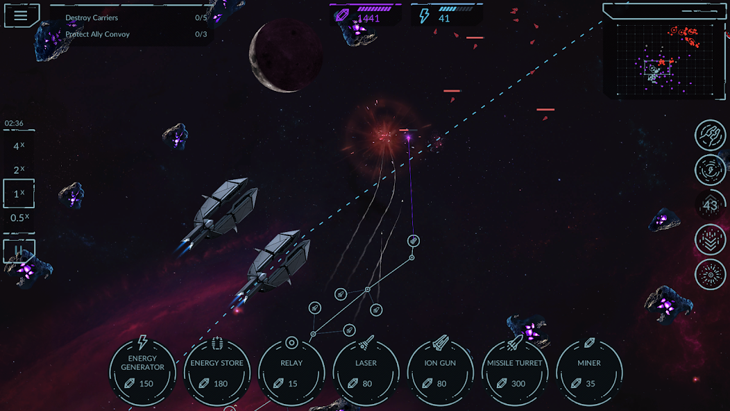 Вам предстоит построить энергосеть, добывать ресурсы и улучшать корабль. Каждое решение важно: от выбора технологий до расстановки оборонительных систем. Враги обладают уникальными характеристиками, что требует стратегического подхода к их нейтрализации.