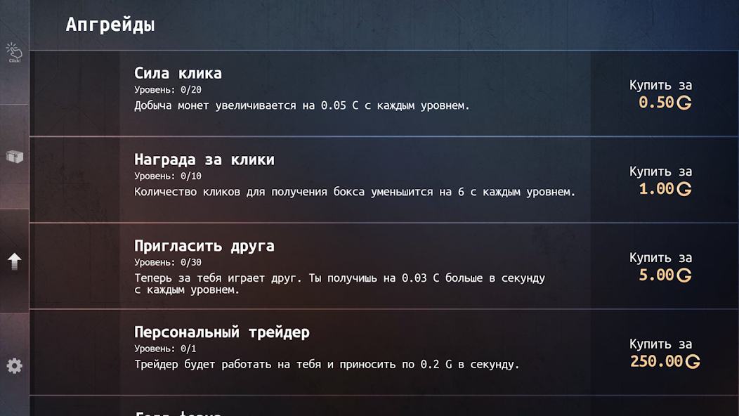 Standoff Case Clicker позволяет вам не только открывать кейсы, но и прокачивать свои возможности. Вы можете: