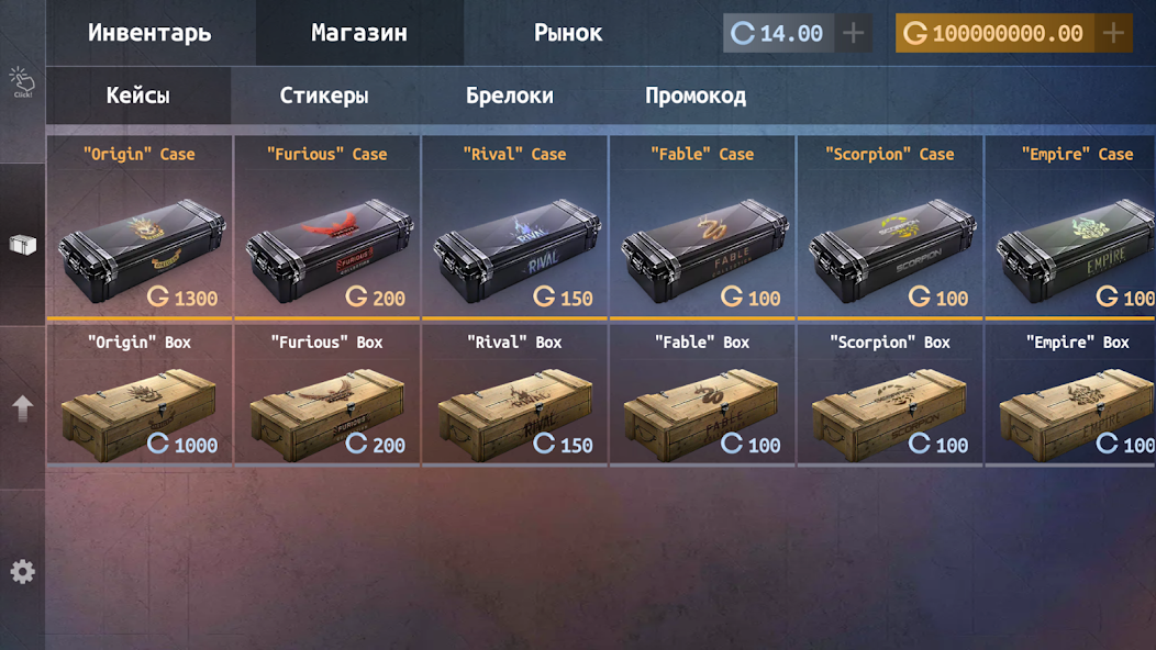 Игра предлагает разнообразие кейсов, в которых скрываются: